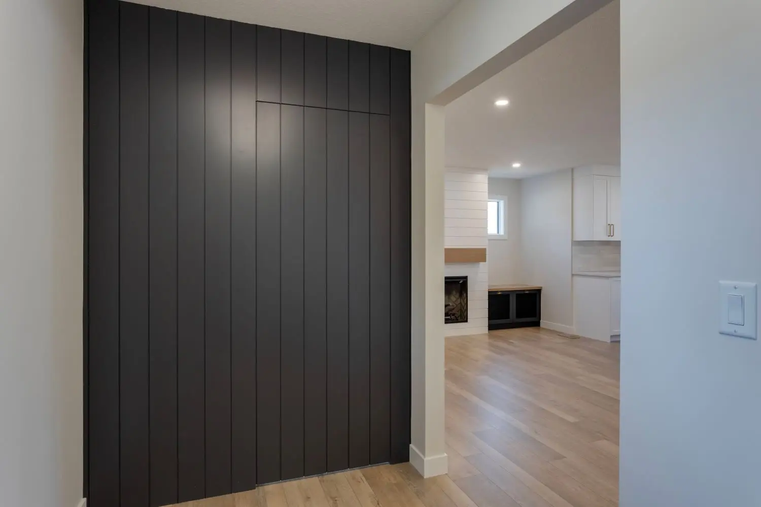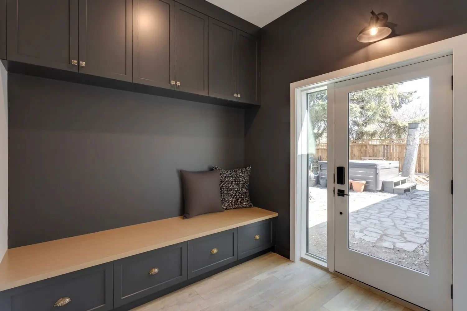 The front addition extended the bungalow’s footprint, creating a welcoming entryway and adding a new bedroom to accommodate the growing needs of the family. At the back of the home, a rear addition provided a spacious mudroom with custom cabinetry and storage—the perfect solution for Calgary’s ever-changing seasons.